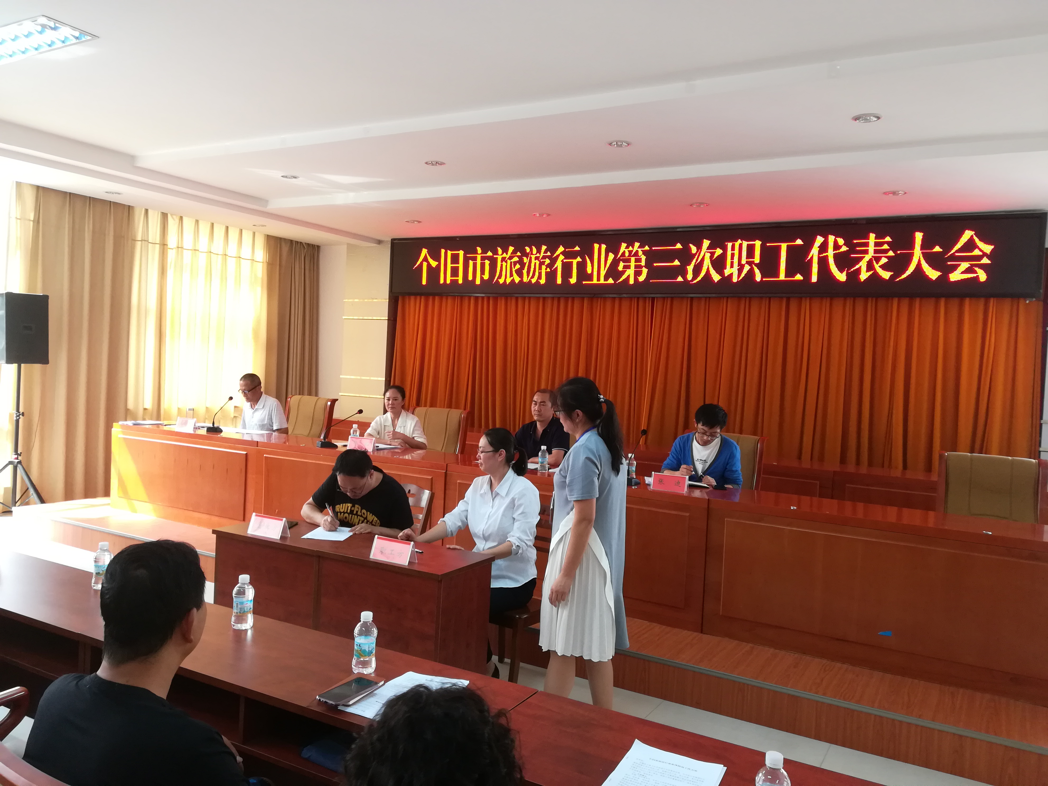 为进一步加强个旧市旅游行业民主管理制度建设,推动旅游行业“稳岗位、促发展、构和谐”的行动落地生效,助力疫后旅游业高质量发展,9月4日下午在个旧市总工会三楼会议室召开了旅游行业第三次职工代表大会。市文旅局工会和市场科负责人,市总工会集体协商指导员,以及各旅游行业企业代表40余人参加会议。会议审议了经工会方与企业方协商产生的个旧市旅游行业《集体合同(集体协商专项协议)》。