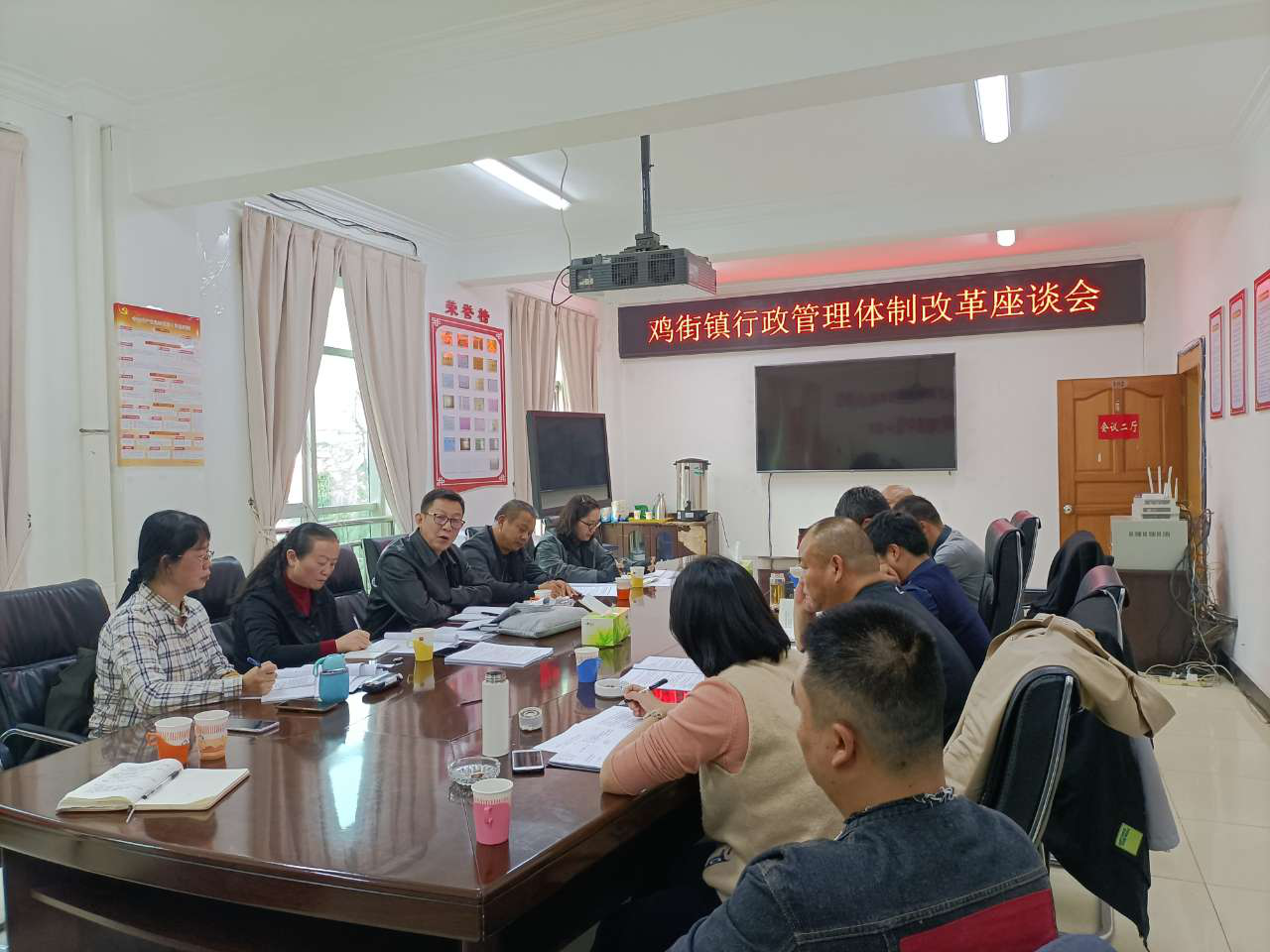 座谈会主要围绕鸡街镇在行政体制改革中六个方面展开讨论:一是扩权赋能方面,针对目前省政府批复方案涉及的管理权限目录中行政处罚类共76项下放事项,市级对应各部门在实践中如何指导实施及存在的具体问题;二是推动行政综合执法中,与市级各部门执法协调配合机制建立情况;三是全面执行行政执法三项制度的情况;四是行政执法人员、行政执法辅助人员的情况,行政执法人员行政执法证的持证情况;五是多元化解矛盾纠纷开展情况;六是民主法治示范村(社区)创建推进情况。