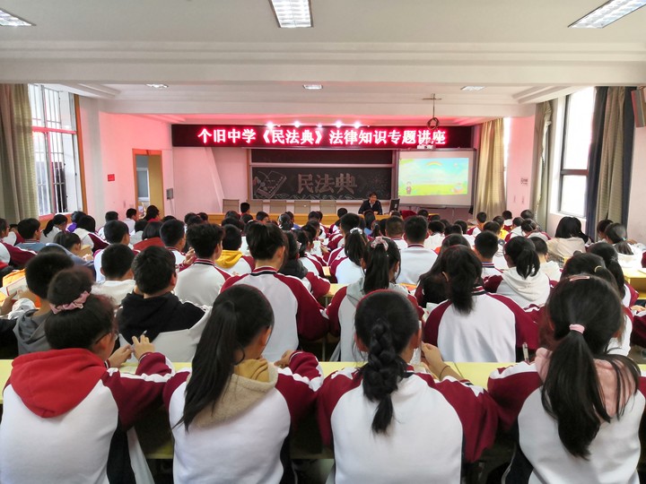 红河州民法典巡回宣讲团成员李志兴,到个旧市沙甸街道金川小学、个旧中学开展民法典宣讲知识讲座,从民法典编纂历程、重大意义、基本价值、理念,涉及青少年学生相关的法律法规:民事行为能力人年龄阶段划分及相应的法律行为效力、监护、人格权、民法典伴随一生的权利保护…为老师、学生带来生动的民法典宣讲课,课堂氛围活跃,讲师语言幽默风趣,案例新颖独特、贴近生活,师生互动频繁,真正做到让法律知识入脑入心,受教育老师、学生达210余人。