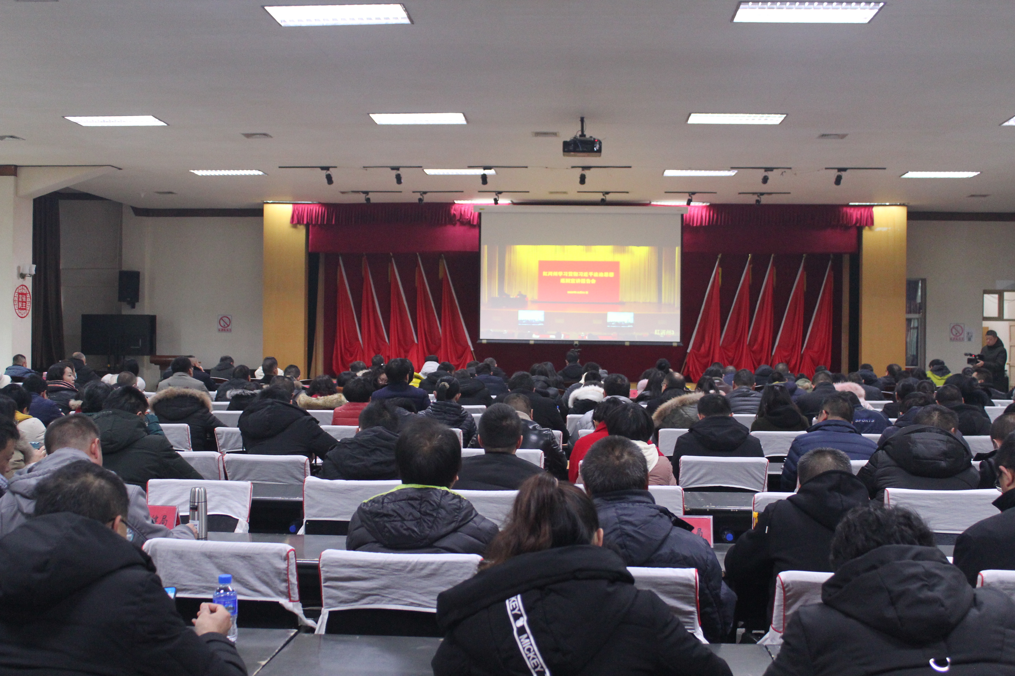 2020年11月16日至17日,党中央召开中央全面依法治国工作会议,提出了习近平法治思想,把习近平法治思想确立为全面依法治国的根本遵循和行动指南。为学习贯彻好习近平法治思想,12月21日,红河州召开学习贯彻习近平法治思想巡回宣讲报告会,邀请云南大学法学院教授陈云东进行宣讲,州委常委、州委政法委书记安治强主持会议。个旧市设1个市级分会场、10个乡(镇、街道)分会场,市级分会场设在原市政府三楼大会议室,市人大常委会主任李永能、市政协主席赵巍等市级领导到会聆听宣讲,全市各单位各部门实职副科级以上领导干部400余人参加报告会。