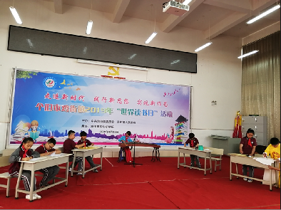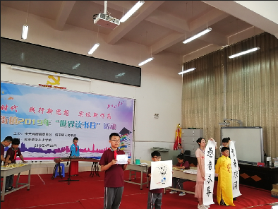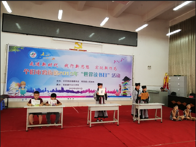 在鸡街镇中心学校的阶梯教室里,师生们精心编排的话剧《汉字的由来》和《纸张的发明经过》,小品《读书的重要性》、相声《我身边的科技变化》以及学生现场表演的琴棋书画等节目营造了浓厚的读书氛围,使广大师生在活跃的气氛中感受读书的魅力。鸡街镇团委组织的“成语接龙”游戏得到了同学们的积极参与,将现场气氛推向了高潮。